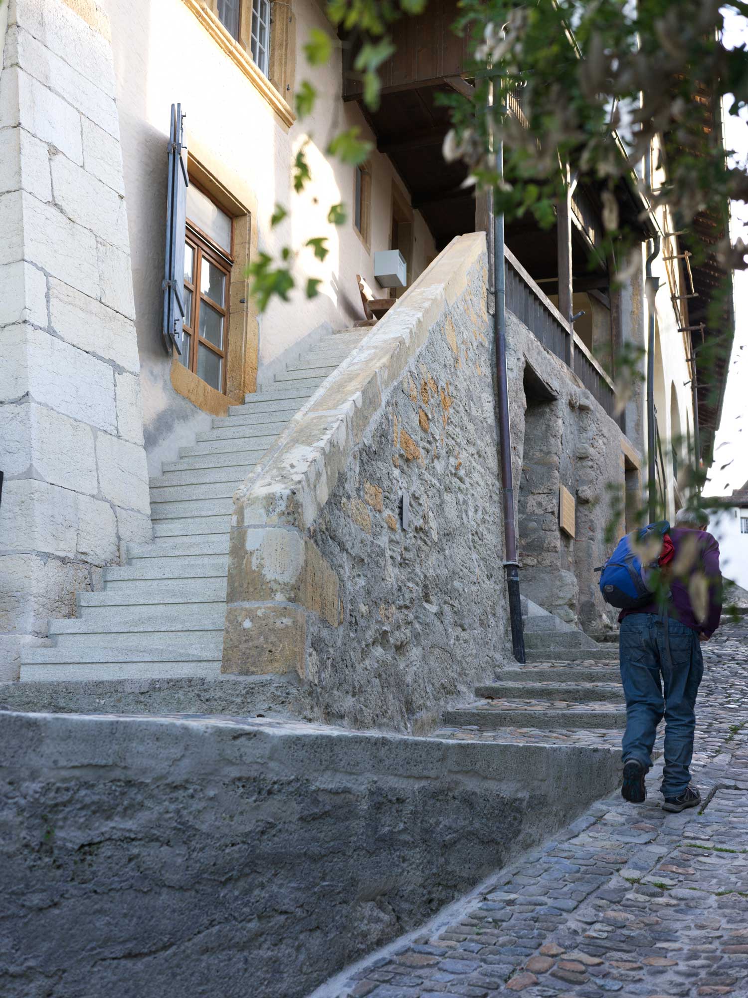 Die Kaskadentreppe entlang der steilen Gasse in der Altstadt ist ein einzigartiger Erschliessungskörper, welcher den Gassenraum und die südliche Häuserzeile prägt. Über Jahrhunderte wurde die Gestalt beibehalten und ist in seiner formalen Ausprägung unverändert. In den 1950er Jahren wurde die Treppe mit einem Betonteppich überzogen und das Bauwerk dadurch bauphysikalisch und gestalterisch abgewertet. Mit der Sanierung 2025 konnte man der unteren Altstadt die ursprünglichen Qualitäten wieder zurückgeben und das historische Gesamtbild klären.