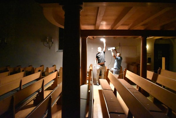 Mit Reinigungsmustern und Beleuchtungstests konnte das Potential der Investitionen vorgängig aufgezeigt werden. Die Innenraumsanierung wurde auf die ruhigeren Sommermonate gelegt und die Ausführung entsprechend koordiniert.