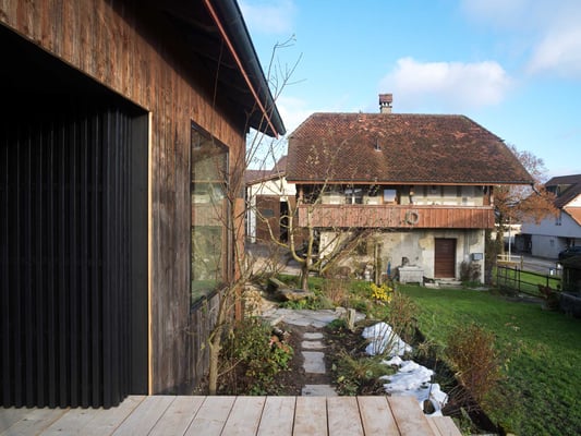 Der historische Wohnstock, früher für die ältere Generation erbaut, kann die heutigen Anforderungen für ein altersgerechtes Wohnen nicht erfüllen und so entstand die Idee im angrenzenden Schopf eine Wohnung einzubauen.